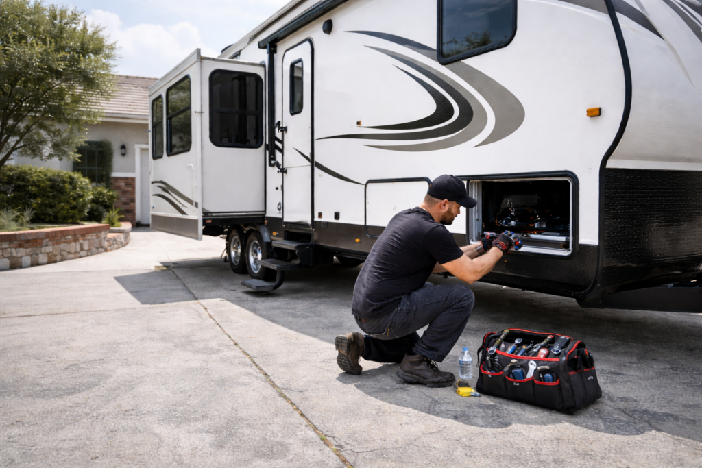 Mobile RV and trailer repair services for motorhomes, travel trailers, and fifth wheels. Honest diagnostics, quality workmanship, and reliable on-site service at your location throughout Hesperia and the High Desert.